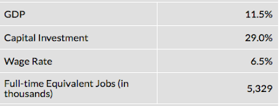 The Tax Foundation feels that a larger economy would result from the significant reduction in the service price of capital for corporations. As well, the reduction of marginal tax rates on individual income would increase the incentive to work, resulting in the creation of 5.3 million new full-time equivalent jobs.