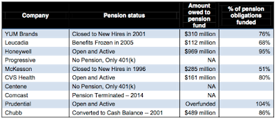 In closing, let's summarize this posting by looking at the pension status and pension funding levels of the ten corporations with the largest CEO retirement accounts that we observed on the first table: