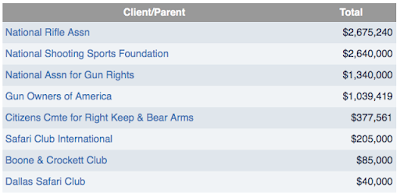 So far in 2015, the gun rights lobby has spent $8.402 million. At its peak, the gun rights lobby spent $15.292 million on lobbying in 2013. Here are the top 8 gun rights lobbying clients and how much each has spent: