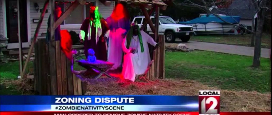 One couple in Cincinnati has an irreverent take on their Christmas decorations, but the neighbors are less than thrilled. Their zombie-filled nativity scene has brought the ire of religious groups and the city.