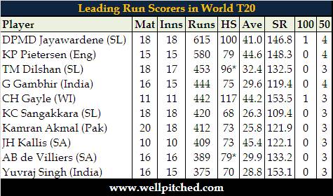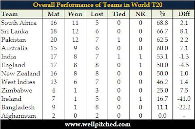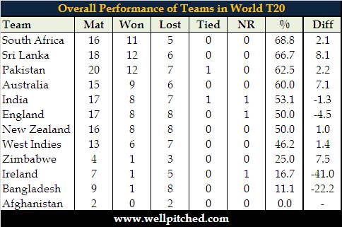 The presence of Malinga and Mendis in leading wickets takers in T20Is overall, as well as, World T20 matches, along with the batting trio mentioned above increasingly makes Sri Lanka look like an extremely dangerous side.