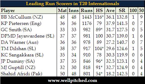 Pakistan undoubtedly has the best bowling attack among all teams in T20 cricket at the moment, and the presence of Ajmal, Afridi, and Gul ensures that you can never count Pakistan out. It will be interesting to see, which one of the three ends the World T20 at the top of this list.