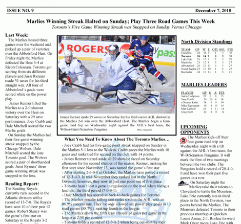 Marlies Week of December 7 December 7, 2010 Robert Mull Hockey 0 You can publish this article on your website as long as you provide a link back to this page.