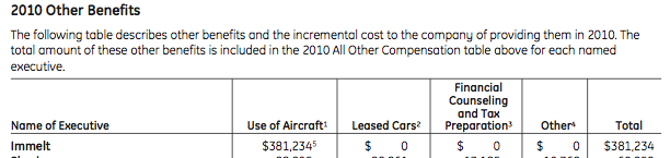One item that I found particularly interesting in the Proxy Statement was Mr. Immelt’s "Other Compensation". Here it is: