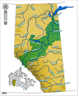 Let’s open by looking at a map of the Athabasca watershed noting that the oil sands operations are located in the far northeast corner of the watershed, south of Lake Athabasca: