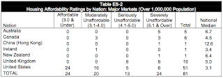 Of all 325 markets in the study and 35 in Canada, 9 (26 percent) of Canadian markets were considered affordable, 19 (54 percent) were considered moderately unaffordable, 1 (3 percent) was considered seriously unaffordable and six (17 percent) were considered severely unaffordable.