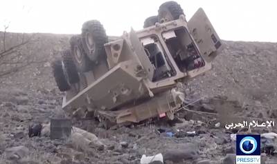 If you watch the video, you can see Saudi forces fleeing in armoured personnel carriers at the 4 minute mark, captured and damaged Saudi vehicles at the 5 minute 30 second mark onwards as shown in this screen capture: