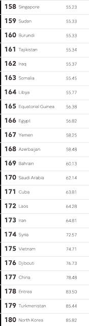 Here is a list showing the lowest scoring nations (least press freedom):
