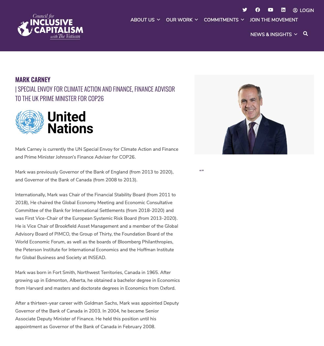 4.) The Council for Inclusive Capitalism with the Vatican – The "Council" is "a historic new partnership between some of the world's largest investment and business leaders and the Vatican, launched today. It signifies the urgency of joining moral and market imperatives to reform capitalism into a powerful force for the good of humanity. Under the moral guidance of His Holiness Pope Francis and His Eminence Cardinal Peter Turkson, who leads the Dicastery for Promoting Integral Human Development at the Vatican, and inspired by the moral imperative of all faiths, the Council invites companies of all sizes to harness the potential of the private sector to build a fairer, more inclusive, and sustainable economic foundation for the world.". The Council is led by a core group of global leaders who are known as "Guardians for Inclusive Capitalizms'. They meet annually with Pope Francis and Cardinal Turkson. Mark Carney is one of the "Guardians/Stewards" or Council Members as shown here:
