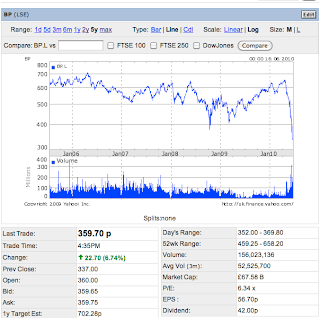 Here’s the chart from June 17th showing the BP’s performance on the London Stock Exchange (priced in pence):