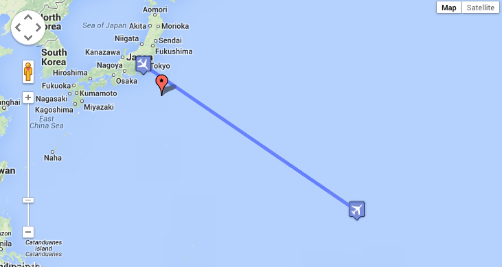 Here is a map showing the approximate route of the flight between Guam and the Philippines:
