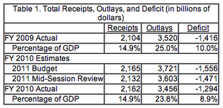 As expected, the Obama administration is blaming the elevated deficit on "the severe economic recession, high unemployment and the financial crisis that were inherited by the current Administration.". It’s hard to argue the point, but two years in, you’d like to think that the "new" Administration should at least shoulder some of the blame for the situation.