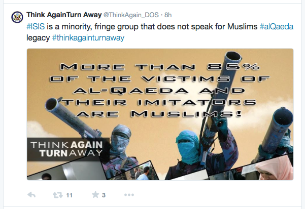 Here is a screen capture showing State's anti-ISIS Twitter feed:
