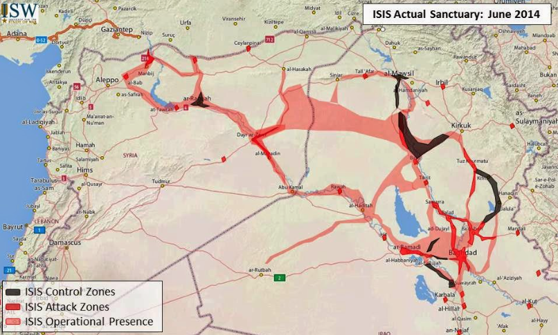 This map shows the areas controlled by ISIS in June 2014: