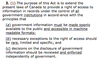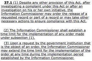 2.) amending the Access to Information Act to modernize and clarify the purpose of the Act and to give the Information Commissioner the power to make compliance orders.