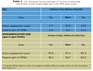 Despite the massive reserve write-downs, the NPR-A is still one the top few areas in the United States for oil exploration (which says a lot about the exploration maturity of the remaining areas). On the downside, the arctic ecosystem is very fragile and any "mistakes" by the oil industry similar to what happened in the Gulf of Mexico will take far, far longer to "fix" since cold temperatures prevent rapid biodegradation of hydrocarbons.