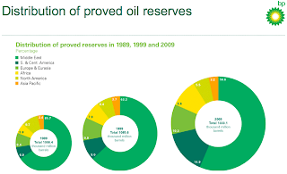 Here are a set of graphs showing that the Middle East’s portion of the world’s proven oil reserves have not risen (and, in fact have dropped by 8 percent) over the past 20 years: