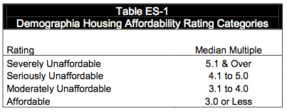 Note that the study considers homes "severely unaffordable" where the median house price is greater than 5.1 times the median household income.