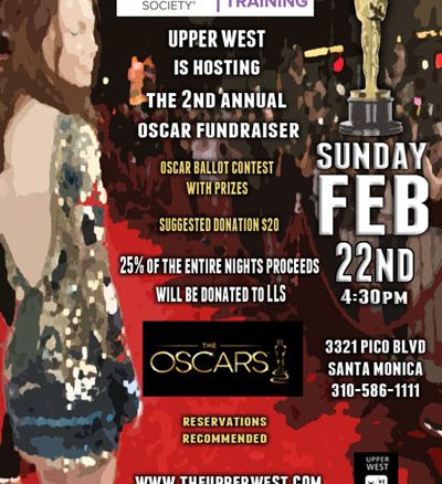Upper West has generously offered to donate twenty-five percent of all sales on Oscar night to the Leukemia & Lymphoma Society. The event begins at 4:30pm (so attendees can experience the red carpet arrivals) and runs though to the completion of the award show.